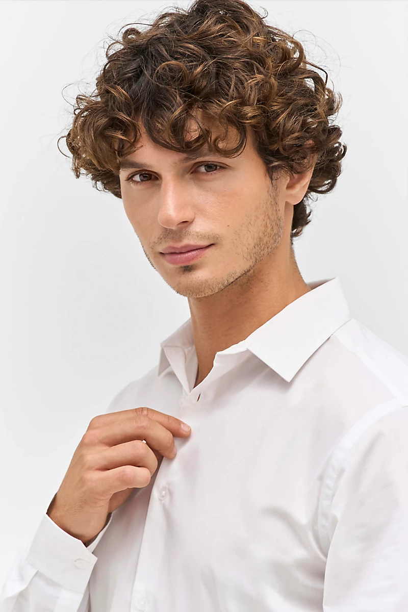 Combina rápida transferência de humidade, sensação de frescura e fácil manutenção. O seu tecido denso, estável e resistente garante: um aspeto impecável, menos vincos e cores duradouras. Toque mais suave, cair limpo, capacidade de impressão perfeita.